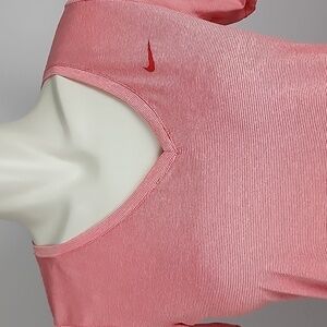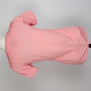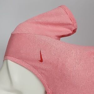 Excellent pre-owned condition, Nike Dri-Fit pink and white pin stripe v neck tee, size medium.