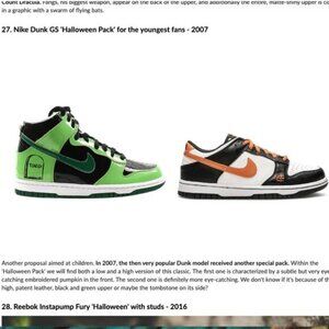 Rare 2007 Nike Dunk Low GS Halloween with embroidered Jack-O-Lantern and Ghosts printed on the black parts. 306339-182.