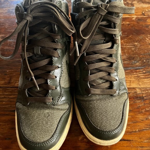 Nike Dunk Sky Hi Hidden Wedge Sneakers Green Leather Canvas
