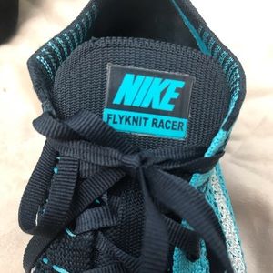 Chlorine Blue colour way, these flyknit racers aren’t sold anymore so you’ll be the only one you know who has them! They’re so cute and up any outfit, perfect to go shoe! Men’s 7.5/Women’s 9