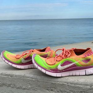 Nike Free 5.0 Flyknit Women's Size 8 Running Shoe Rainbow Atomic Pink