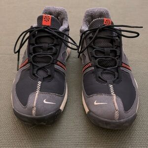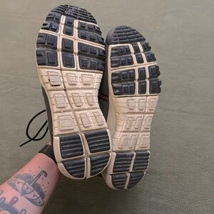 Contrasting orange accents make their way to a webbing pull tab at the heel and exposed zigzag stitching on the quarter panel. A flexible Nike Free midsole yields a smooth, comfortable ride, while the outsole features rubber pods in high-wear areas for durable traction.