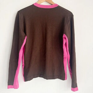 The brown and pink knit stretch design is both stylish and comfortable, making it a great addition to any wardrobe.
