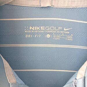 Nike Golf Shirt Men's Blue White Striped Pattern Short Sleeve Dry Fit Size Large