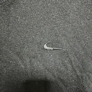 This Nike V-neck Sweater is very soft and light weight Great for those cool mornings on the golf coarse. Fabric blend is 55%Polyester and 45% Wool. The garment is made in Turkey. Size is Extra Large Mens. There is a slight pull on the arm but can possibly pulled through to the inside cuff. Also some pilling present but nothing excessive. The colour is Jet black and sports a Nike check on breast of sweater. Pit to Pit is 21 inches. Neck to Bottom of sweater is 25 inches and shoulder to cuff is 29 inches.