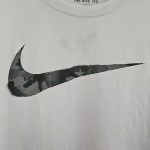 This Nike gray short sleeve tee features the iconic black swoosh logo, offering a blend of casual style and athletic comfort. Crafted from a soft cotton blend, it ensures a comfortable fit for everyday wear.