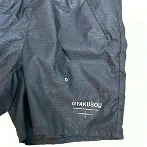 Upgrade your athletic wardrobe with these Nike Gyakusou running shorts. Designed for optimal performance and comfort, these shorts are made from a high-quality blend of polyester and spandex. The size is small (S), perfect for active wear.