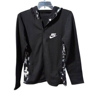 Nike Hoodie Jacket Black/White Full Zip Long Sleeve Fleece Sweater with Pockets