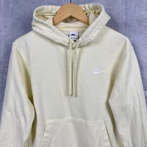 Nike Hoodie Men’s S Cream Yellow Sportswear Club Fleece Swoosh Logo Embroidered