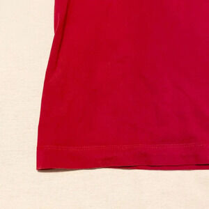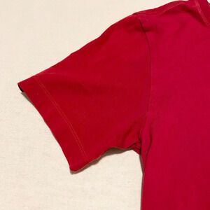 This shirt is pre-owned and in used condition. There is a small hole on the front right next to the back leg. There is some discoloration and wear on the shirt. Please see all photos for exact item.