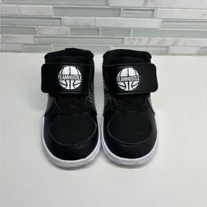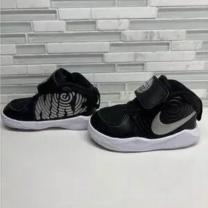 Sleek Nike sneakers for kids. Black with silver accents. Ideal for play and daily wear.