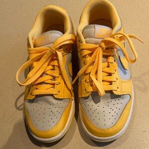 Vibrant Nike sneakers for kids. Bright yellow with light gray accents. Ideal for play and daily wear.