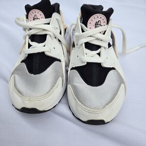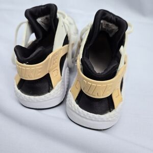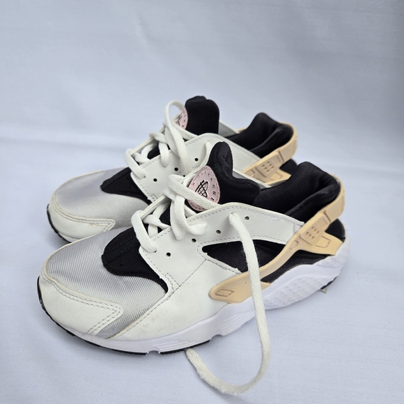 Chic Nike sneakers for kids. White, black, and cream design. Perfect for play and style.