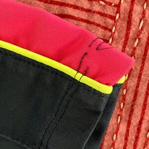 AI description: Nike joggers with bold red sides and yellow trim. Ideal for active kids.