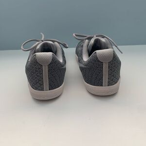 Stylish gray sneakers with a unique pattern. Perfect for casual wear.