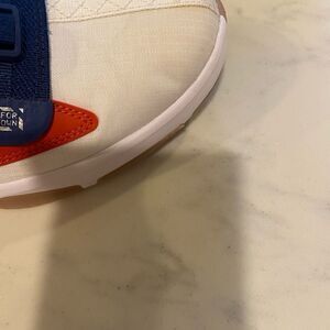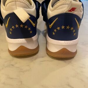 Nike LeBron Soldiers. White. Accent in red and blue.