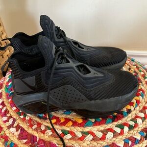 Sleek black athletic sneakers with a modern design. Perfect for sports and casual wear.