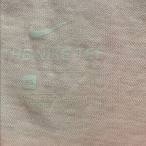 Light pink cropped tee featuring a bold white Nike logo. Soft and stylish design. Pit to pit is 17”