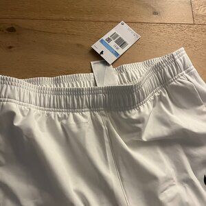 Perfect for colder weather and for getting ready for big matches. A good warm-up routine preps you for the coming match. Get out there in our NikeCourt Advantage Trousers and prepare for greatness. These keep you moving side-to-side with cool, stretchy fabric. A weather-ready design means a little rain won't dampen your routine. There are even zips at the hem so you can easily take the trousers off over your shoes when it's time for the opening serve