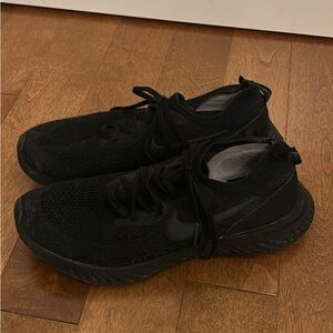 Sleek black Nike black men’s size 8 epic react sneakers. Perfect for sports and everyday wear.