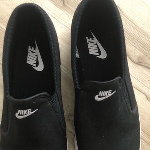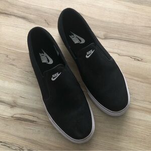 Sleek black loafers with white accents. Easy slip-on design. Perfect for casual wear.