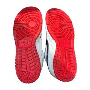Featuring a bold split black-and-white two-tone leather design with premium textured panels, silver “Nike” lace dubraes, and red bottoms.