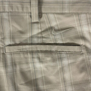Nike Men’s Golf Shorts Nike FitDry Size 38 Flat Front Plaid Tan White Blue