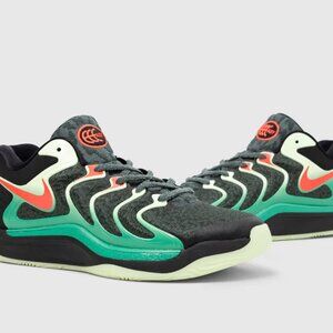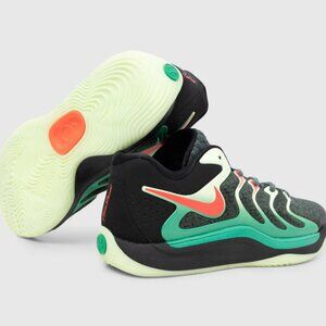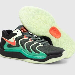 Kevin Durant brings a personal touch to the latest version of his shoe with the release of the Nike KD17 "Easy Money Sniper." A mesh upper highlighted with hits of neon green and red accents, reflective elements and glow-in-the-dark outsoles add extra pops. Air Zoom units in the forefoot with springy foam offers responsive pop when the game heats up. The Nike KD17 "Easy Money Sniper" is capped off with a ridged outsole for superior traction with every move.