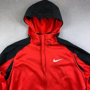 Nike Mens Sweater Jacket XL Red Black Hyper Elite Full Zip Hooded Long Sleeve