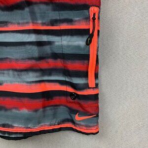 Nike Mens Swim Trunks Medium Red Gray Striped Shorts Orange Mesh Lined Pockets