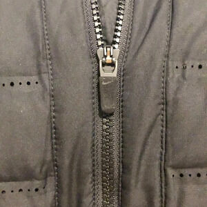 This jacket is pre-owned and in used condition. There is some minor marks and stains on it. The down feathers are popping out in a few areas. Please see all photos for exact jacket.
