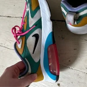 Vibrant sneakers featuring green, gold, and pink. Perfect for active play. Please review images carefully as the price reflects signs of wear.