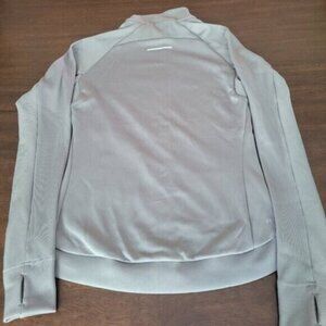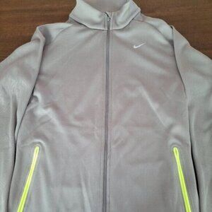 Nike N12 Women's Running Track Jacket Size Small Gray And Bright Yellow. DRI-FIT 100% Recycled Polyester. Thumb holes Zipper Pockets Velcro inside pocket. Run Activewear Workout