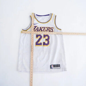 Gear up for game day with the Nike NBA Los Angeles Lakers LeBron James White & Purple Dri-FIT Swingman Jersey, available in size Large (LG) 48. This iconic jersey seamlessly blends style and performance, capturing the essence of classic NBA fandom.