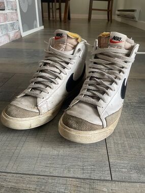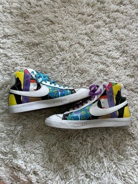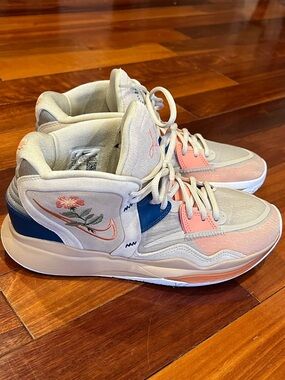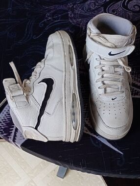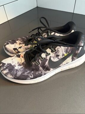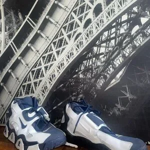 Dynamic Nike shoes in navy and white. Ideal for sports and everyday wear.