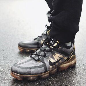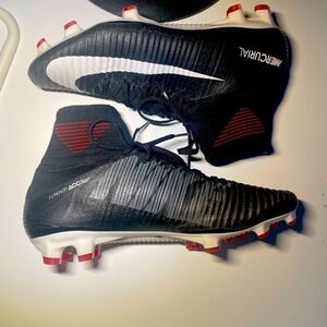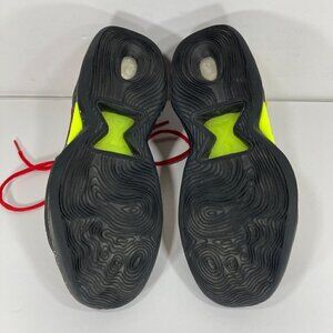 Shoes have some signs of wear such as tears to outer material on inner toe sections of each shoe as shown. Orange heel loop on right shoe and both shoe laces have some wear. Inner heel sections and outsoles in good condition. Refer to photos for further details.