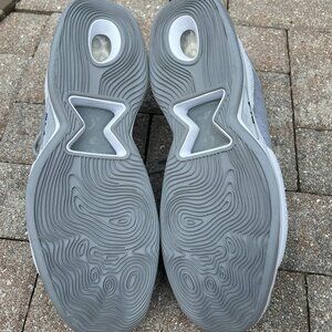 A new pair of Men’s size 17 Nike PG5 TB Basketball Shoes without the box. The color pattern is Wolf Grey, White and Black. Model DM5045-003.