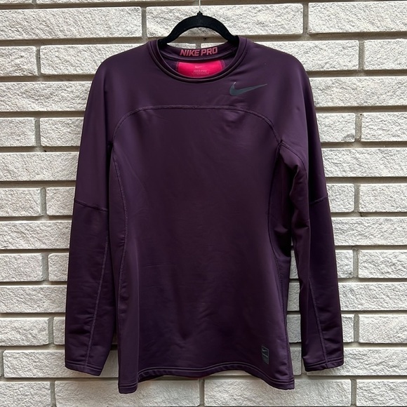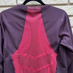 Nike Hyperwarm Long Sleeve Tee. Purple colour with burgundy panel at back.