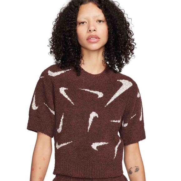 Nike Phoenix Cozy Boucle Slim Cropped Knit Short Sleeve Top M