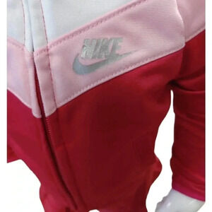 Nike Pink Track Jacket Size 9M In good condition. The silver chest logo has minor peeling- see last pic. Other than that it’s in excellent condition (14)