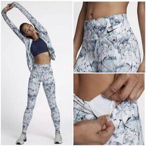 Nike Power Dri-Fit diamond print training tights leggings white with blue / gray design