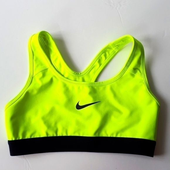 Nike Pro Classic Swoosh Dri-Fit Sports Bra Medium Support Neon Yellow Black XS