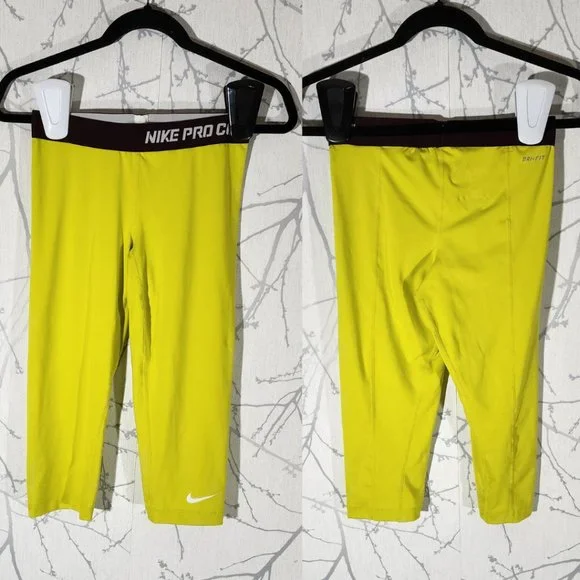 Nike Pro Combat Yellow Mid Rise Compression Capri