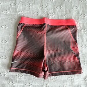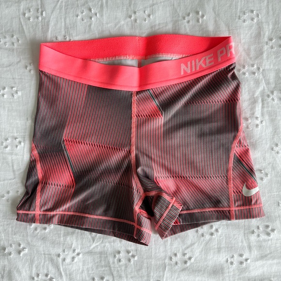 Vibrant Nike Pro Dri‑FIT shorts featuring a striped pink and grey pattern with a matching pink waistband. Designed with a supportive compression fit and moisture‑wicking performance fabric, these shorts are ideal for training, running, and gym sessions. The stretch material moves comfortably with you, and the wide waistband stays secure through every workout.