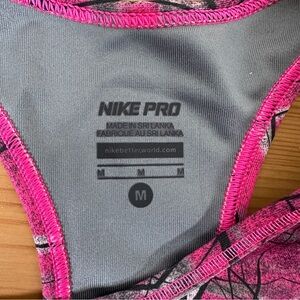 nike sports bra, nike pro bra, pink nike sports bra, dri-fit sports bra, racerback sports bra, geometric print bra, workout bra, medium support sports bra, nike athletic wear, women’s activewear, gym bra, training bra, fitness top, moisture wicking bra, running bra