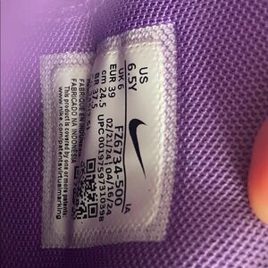 Vibrant purple shoes with striking pink details. Prominent Nike swoosh on the side.