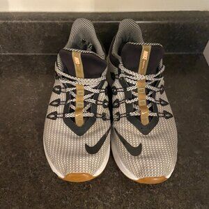 The Nike Men's Quest SE Running Shoes offer a smooth, comfortable ride for your running pursuits. These neutral road running shoes feature a breathable mesh upper that keeps feet cool, while the cushioned foam midsole provides improved cushioning for an effortless heel-to-toe transition. The soft collar padding ensures ankle comfort, and the midfoot fit band works with the laces to keep your foot secure and stable. With increased foam height for a softer sensation underfoot and a durable rubber outsole for superior traction, these Nike running shoes are designed to help you chase your running goals.