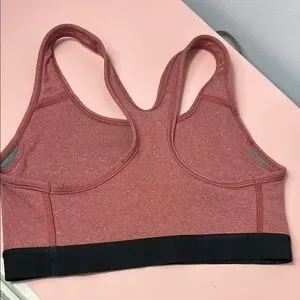 Elevate your workout wardrobe with the Nike Redish pink and Black Sports Bra, designed for optimal support and comfort. Featuring a sleek racerback design and moisture-wicking fabric, this sports bra ensures you stay dry and comfortable during any activity. The black elastic band provides additional support, making it a perfect choice for both high-intensity workouts and casual wear. Great used condition.