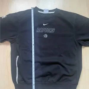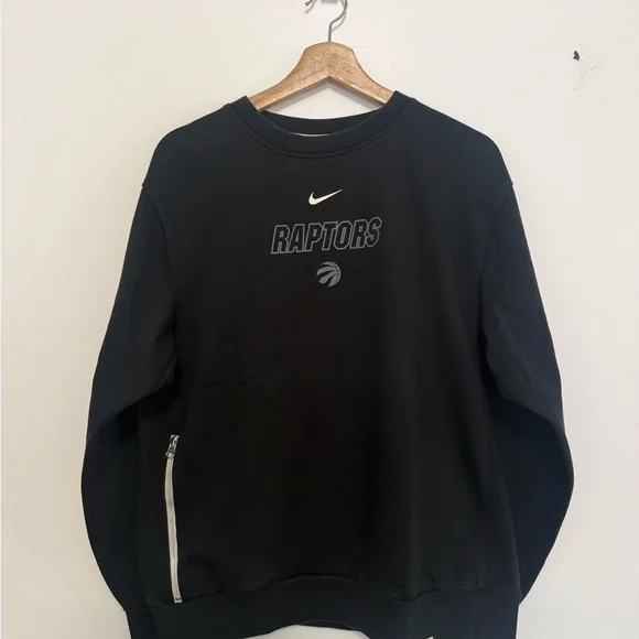 Classic Dri-Fit black crewneck with Raptors logo. Comfortable and stylish for fans.