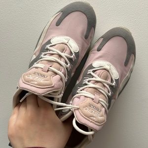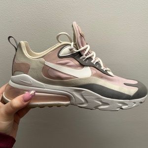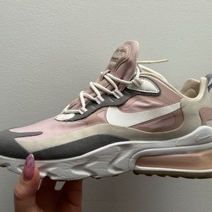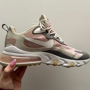 The neutral Nike React shoes are a women's size 9. They have a combination of earth tones ranging from nude to grey. They have been worn a couple times but are still in great condition.